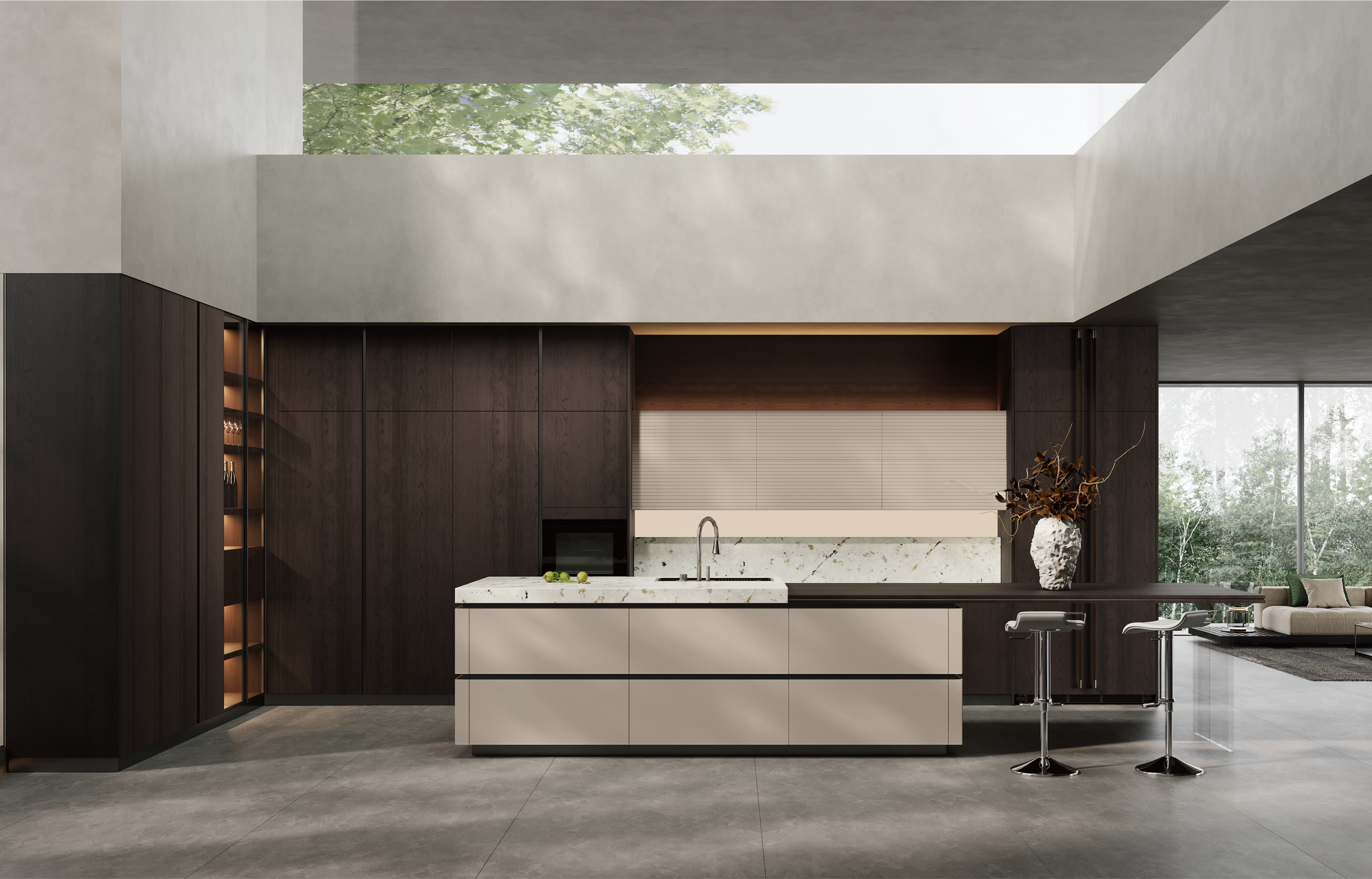 通过CA88厨柜量体裁柜,定制出适合主厨下厨的烹饪区和洗涤区的舒适高度。